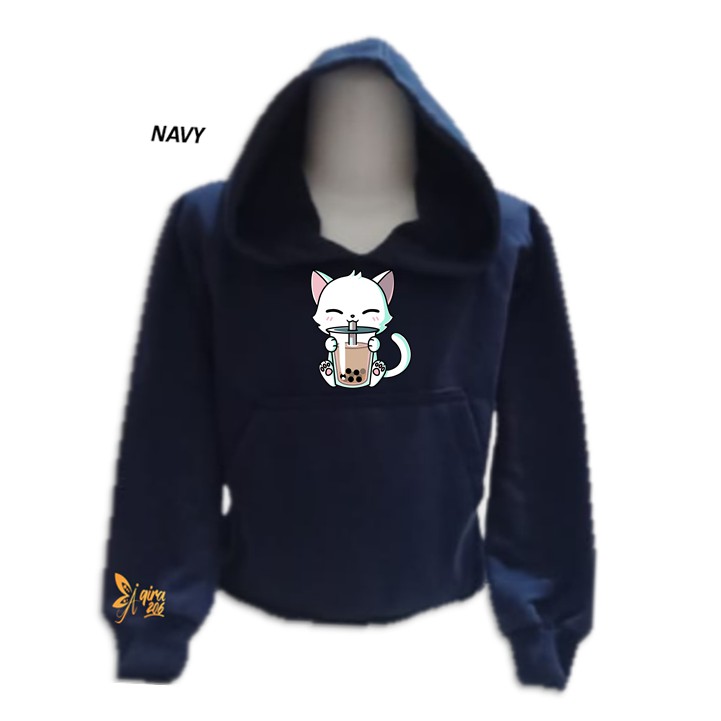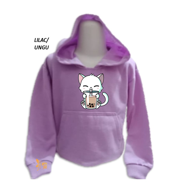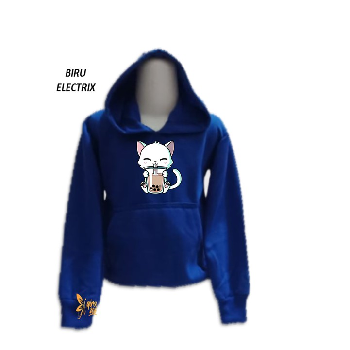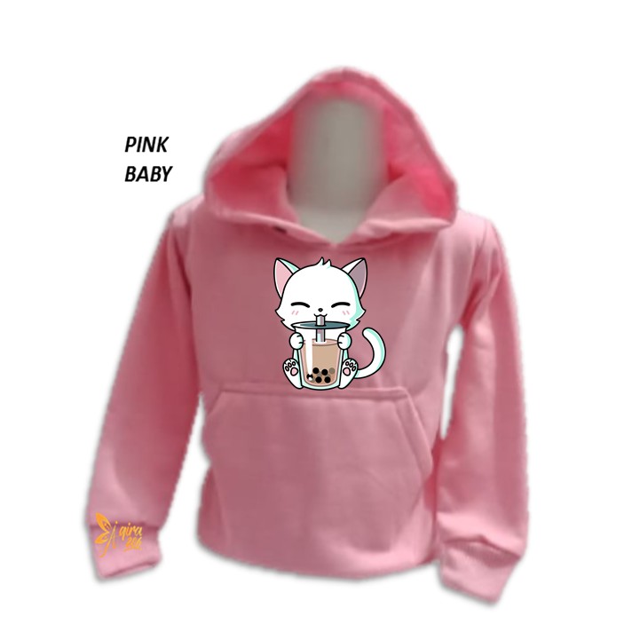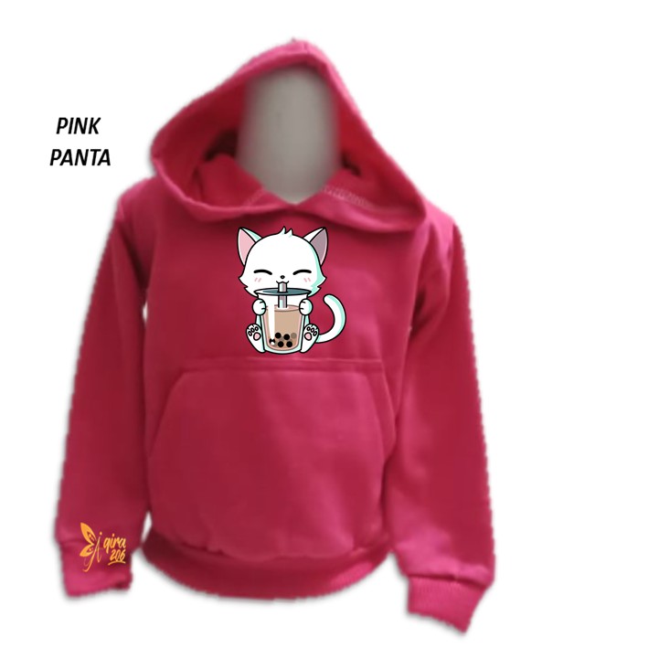 Sweater Hoodie Anak Kitten Boba Sweater Anak Fleece Unisex