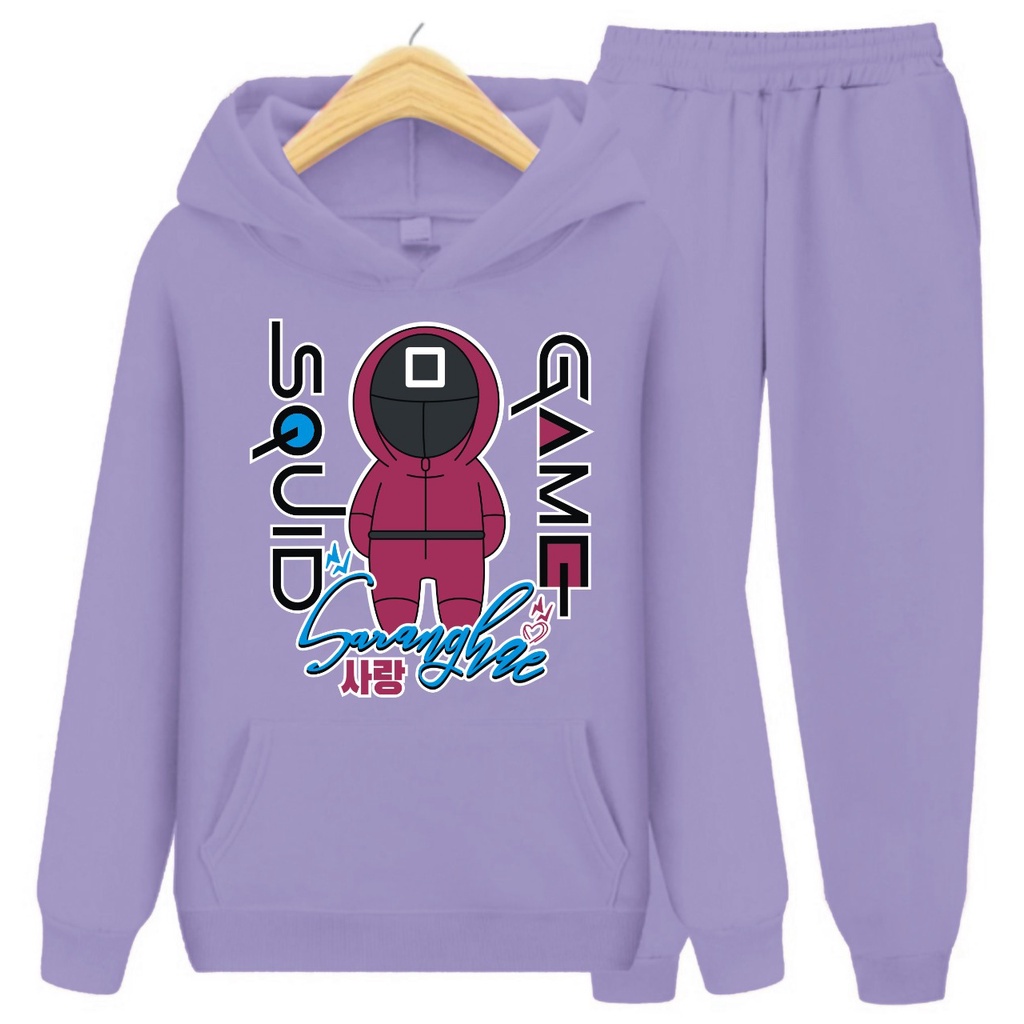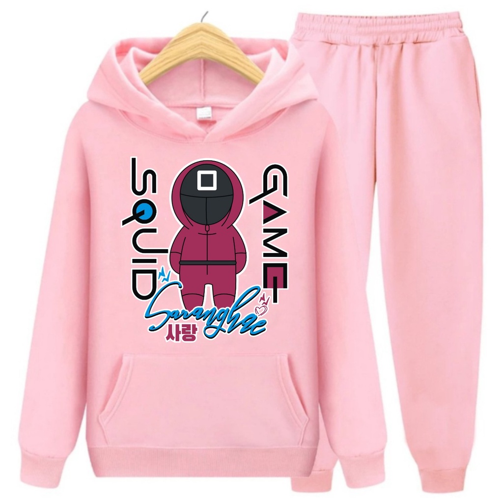 Harga Setelan Sweater Hoodie SQUID GAME SARANGHAE ROBOT/Set Sweater Anak/Size S (4-6Thn) M (7-9Thn) XL(10-14thn)